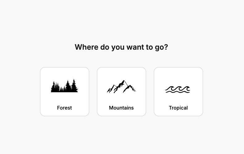 Forest: There are so many types of beautiful end views you could bring viewers to here (ie. a waterfall, river, beach, a view from some elevation); just ensure the walk to the final view is through a forested area.